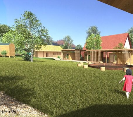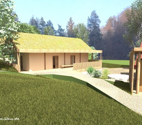 [Stand 7.25] Unsere ersten geplanten Schritte waren der Bau eines barrierefreien, beheizbaren Sanitär-Gebäudes, unser Badehaus mit Toiletten, Duschen und Pflegeräumen. Ergänzt im zweiten Unterbauabschnitt mit einer barrierefreien, öffentlichen Toilette im Untergeschoss, doch die ist noch Zukunftsmusik. Gestiegen Baukosten und Bauszinsen haben das Vorhaben deutlich eingeschränkt.