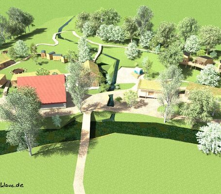 - Abbau der alten Toilettenbauwägen, erstellen der neuen Wege auf dem Gelände, auch zur Vorbereitung und Vorbereitung für die Hotelbauwägenplätze. Dazu auch versetzen der alten Keltenhäuschen bzw. Hüttchen.
