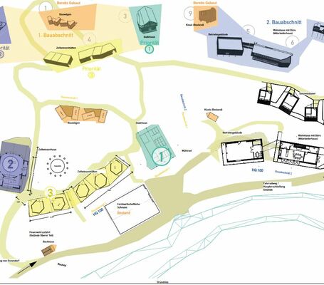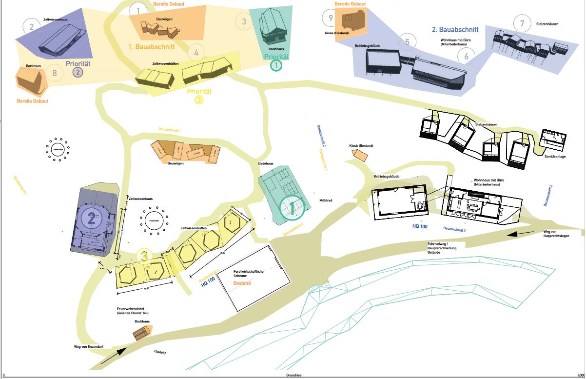 - Fertigstellung des Badehauses, Vorbereitungen für die notwendigen weiteren Bauprojekte (Zeltwiese, Parkplätze, Brandschutz, Lärmschutz usw.)